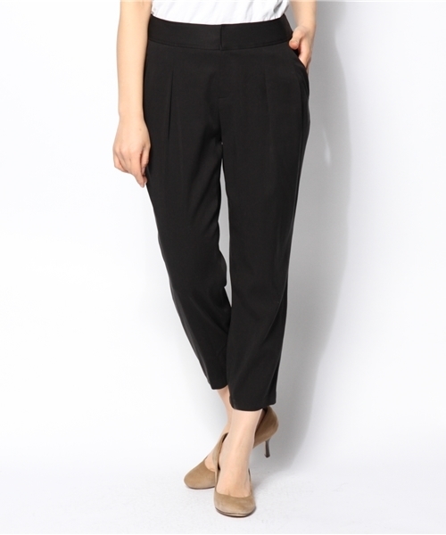 生地の落ち感と光沢感が上品な印象のテンセルテーパードパンツ。 ウエストと裾の後ろ部分にゴムが入っており、履き心地も抜群です。シーズンレスでお使い頂けます。 店舗へのお問い合わせは下記品番でお問い合わせください。 品番:BHS-6402-A model:H160 B82 W60 H88 着用サイズ:38