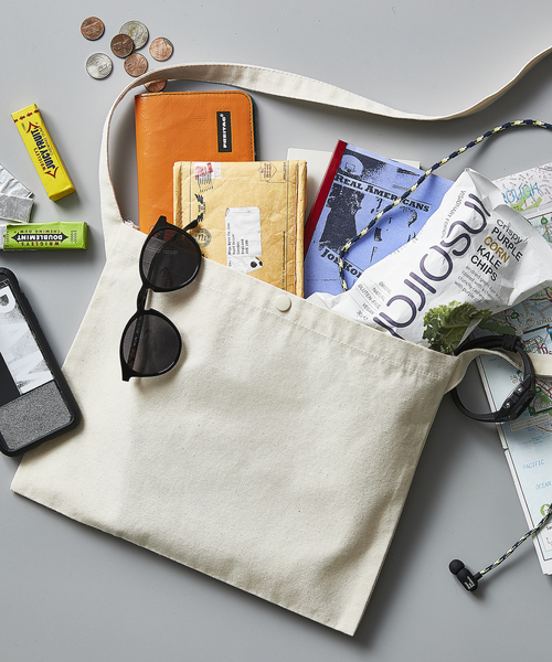 <サスティナブルアイテム>プチプラが魅力のキャンバス素材サコッシュちょっとしたお出かけにぴったりなサイズ感280/㎡のレギュラーキャンバス生地を使用したサコッシュ。サイクリング、旅行などのアクティブシーンにとても便利です。マチがなくシンプルな袋状で、普段持ち歩く小物を入れるのにちょうどよいサイズ。袋口スナップボタン付。※ナチュラルのみ無漂白エコマーク認定商品です。地球にやさしい、エコマーク取得こちらの商品に使用されているコットンキャンバス素材は、無漂白で地球にやさしい「エコマーク」を取得。 ※エコマークについては、エコマーク公式サイトをご覧ください。