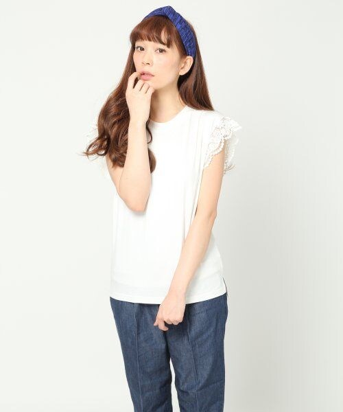 袖部分がレースになったシンプルなプルオーバー。 フレンチスリーブのような形で、着るだけで可愛らしい印象になります。サロペットのインナーにさらっと着るのもおしゃれです☆