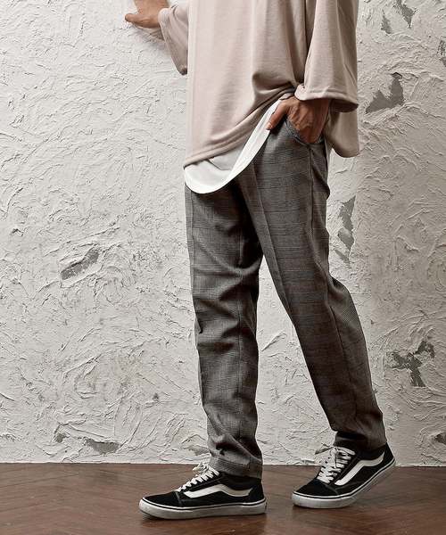 新作【グレンチェックトラウザー】「品格をプラスする上質トラウザー」大人な雰囲気を演出してくれるグレンチェックをあしらった上質トラウザーの登場。程よく細身のシルエットで仕上げコーディネートをスッキリとした印象に。ウエストには調節紐があり、ベルト要らずで楽な穿き心地をお楽しみいただけます。「スラっと決まる、大人のスーツ地」サラサラとした肌触りのスーツ地を使用しております。これからの季節にピッタリな薄手な素材で仕上げ、心地よい穿き心地を実現。落ち着きのあるグレンチェック柄が大人な雰囲気を作り出してくれます。■生地の伸縮性 ・・・ 伸縮しません■生地の透け感 ・・・ 透けません■生地の厚み ・・・ やや薄いです■裏地の有無 ・・・ 無し=============================【お買い物をもっと便利に楽しく♪】■商品のお気に入り登録をすると・・・完売カラー・サイズの再入荷通知や、ラスト1点の通知、お得なセール情報も受け取ることができます!■ブランドのお気に入り登録をすると・・・新商品や再入荷のお知らせなどいち早くブランドの最新情報を受け取ることができますのでご登録をオススメします!