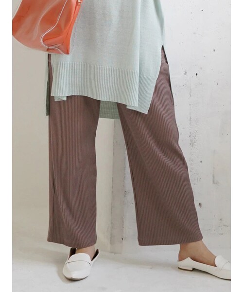 リブの縦ラインですっきりと見せてくれるリブパンツ。 伸縮性のある素材はリラックスした穿き心地で、ラフな雰囲気でこなれ感のある着こなしが叶います。 いつものパンツと変えるだけでおしゃれ度がグッと格上げするおすすめの1本です。