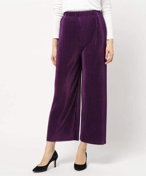 プリーツがふんわりと動きを出してくれるワイドパンツ。サテンが上品な雰囲気を醸し出してくれます。光沢感が明るく春らしい印象を与えてくれる高見えアイテムです。 スカーチョのようなフレア感のあるシルエットが可愛い1枚。 【素材・サイズ感】ウエストゴムで着脱スムーズ、ウエストインも楽々。落ち感のある素材で体のラインが響きにくく、ロングシーズン活躍してくれそうなボトムスです。 【スタイリング】コーデのアクセントになるアイテムなのでシンプルなトップスと合わせるだけでこなれた着こなしに。ニットとの相性も◎きれいめからカジュアルまで1着で着回しのきくアイテムです。 プリーツスカートではガーリーすぎて抵抗がある方にもおすすめです。 ウエストゴム有りです。