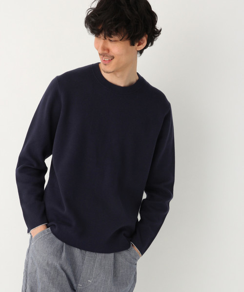 配色がスタイルのアクセントに やや薄手で柔らかく肌触り抜群のハイゲージニット。 表裏で色を変えて配色にしたデザインで袖の裏側も配色なので少し折り返してアクセントにした着こなしもアリです。 ご家庭でお洗濯できるのでお手入れもしやすくなっています。