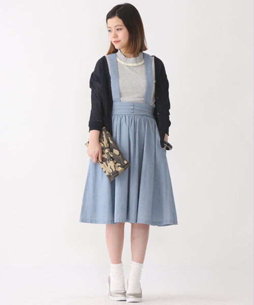 mystic(ミスティック) 長めのフレアシルエットが旬なサスペンダースカート。サスペンダーは取り外し可能なので、2WAYでコーディネイトが楽しめます。 合わせるトップスを選ばない、シンプルカラーデザインもポイント。