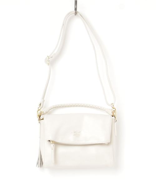 ”くったりとした見た目がフェミニンなアミテタッセル2WAYショルダーバッグの登場”メインはマグネット仕様で開閉しやすく物の出し入れに便利です。フロントはゴールドのブランドロゴ入りでさり気ないお洒落をアピール♪可愛い口折れ風デザインはフラップ部分にファスナーポケット付きでキーケースやスマホなど小物の整理に便利です。サイズ調整可能なショルダーベルト付きで2WAY仕様なのも嬉しいポイント♪メインに内ポケット、背部にもファスナーポケット付きで機能性も抜群です。持ち手の編みデザインやタッセル付きでシンプルコーデのアクセントにもオススメです。お手入れのしやすい合皮仕様でお天気を気にせずに使えオールシーズン大活躍するオススメのアイテムです。カラーはブルー、ホワイト、ブラックの三色展開です。※スタジオ及び屋外での撮影画像は、光の当たり具合で色味が違って見える場合があります。またご覧いただきますモニターや使用環境により実際の商品と多少色味が異なって表示される場合がございます。 予めご了承をお願いいたします。【お買い物を便利にご利用頂くために】▼商品のお気に入り登録完売カラーの再入荷通知、ラスト1点の通知、セールの通知を受け取ることができます。▼ブランドのお気に入り登録新作入荷や再入荷など、ブランドのお得な情報をいち早く受け取ることができます。※他のキャンペーンにより、期間中に価格が変動する場合があります。※セールは予告なく終了させていただく場合もあります。