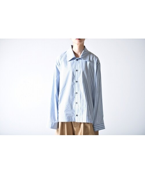 コットン生地を使用したショートシャツ。 ボックスショートシャツらしい気品溢れるクラシックな雰囲気を演出します。 ショート丈の為、ストリートに馴染み軽やかな印象を与える一着。 同素材、柄違いを左右に配する事で、視覚的な面白さをプラス。 春にはボタンを全開させて羽織として着用もオススメのスタイル。 冬にはインナーとして柄を楽しむのも◎ 着丈を活かしたレイヤードスタイルにも映える一着となっております。 ユニセックスで着用可能。