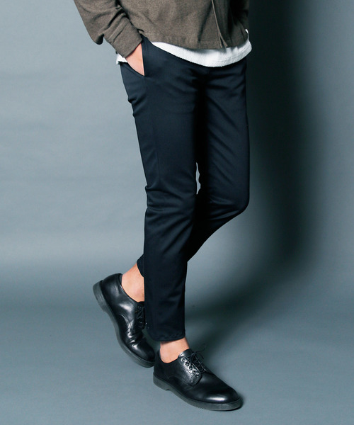 Magine新型チノパン!ジャストレングス テーパードパンツコットン/ポリウレタンの混紡コンパクト糸を使用した生地を使用ストレッチ入りで、動きのしやすさはもちろん、ジャストレングス・テーパードと脚を綺麗にみせるシルエットになっております。ややハリ感のある素材感のため、綺麗めなアイテムとも相性が良く、ビジネスカジュアルとしても活躍いたします。※画像の写真はサンプルになります。実際の商品と、仕様・サイズ・加工が若干異なる場合がございます
