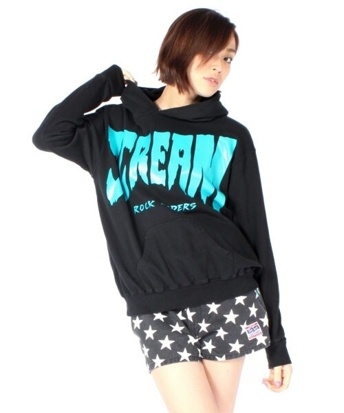 デザインの効いたロゴをはみ出すくらいにレイアウトしたボーイッシュなビジュアルアイテム☆だぼっと着られる存在感のあるBIGパーカーはコーデのアクセントにもピッタリです♪