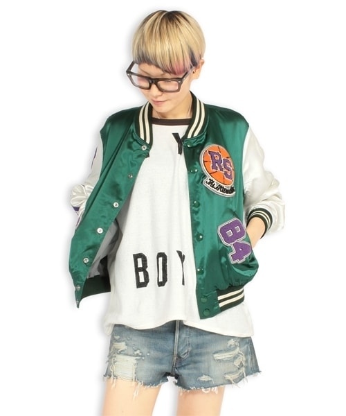 架空のスポーツチームを想定してデザインされたRNAのオリジナルスタジャン!大胆にレイアウトされた前後や袖のチームワッペンがアクセントになって、サテン素材の独特な光沢感でより存在感を放ちます♪素材 アセテート100%(光沢のあるエステル系素材)M サイズ着丈54.5 cmバスト110.0 cm肩幅44.0 cm袖丈56.5 cm裾周80.0 cm※こちらはあくまで目安となります。(単位/cm)+/- の誤差が生じる場合がございます。ご了承下さい。ボディサイズバスト82.0 cmウエスト 59.0 cmヒップ85.0 cmブラック・モスグリーン Model 身長 169 cm Mサイズ着用レッド Model 身長 170 cm Mサイズ着用