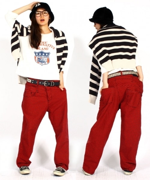 個性の効いた片面だけのWヨーク仕様と、ボーイフレンドなルーズ感も魅力のロークロッチパンツ☆ギンガムチェックのベースと独特のデザインをMIXした個性の光るRNAのデザインボトムです☆