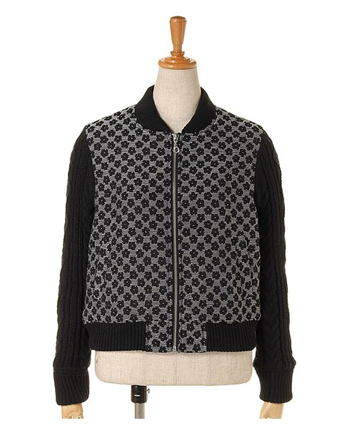 身頃に浮かぶフラワーパターンが、レトロガーリーな雰囲気を醸し出すブルゾン。ケーブルニットの袖をドッキングした、異素材のコンビネーションもワザあり!ファスナートップにはメタルのロゴモチーフが揺れて、ディテールまで抜かりのない仕上がりに。スッキリと着こなせる、コンパクトなシルエットもGOOD◎キャップやスニーカーを合わせて、スポーツMixに着こなすのが今季流。