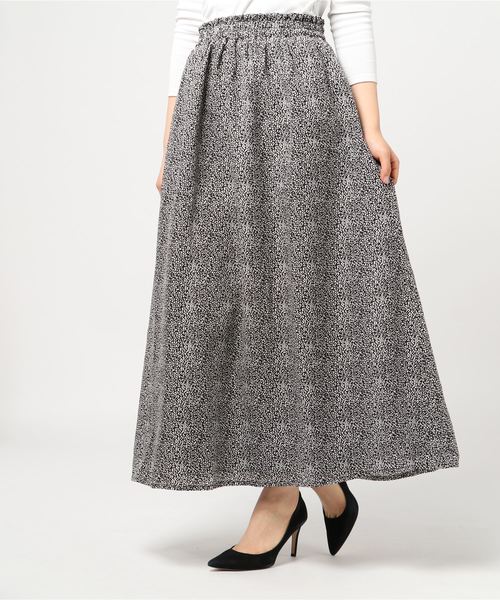 トレンドライクなレオパード柄のマキシスカート。ギャザーを入れふわっと女性らしいシルエットに★大人っぽく着こなせる一着です♪