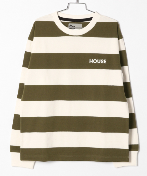 IN THE HOUSEコラボアイテム「ファミリーで楽しめるストリートファッション」をコンセプトに掲げるスタイリストMASAHさんとモデル今宿麻美さん夫妻が手掛けるセレクトショップ「IN THE HOUSE(インザハウス)」と「親子リンクで楽しむファッション」をキッズラインのコンセプトに掲げるグローバルワークの双方が互いに共感することでコラボが実現!太ピッチのボーダーをベースに胸部分にHOUSEのワンポイントプリントを入れたシンプルなデザイン。しっかりとした天竺素材を使用し着心地が良く、ややゆったりなビッグシルエットになったコンセプトのストリート感のある一枚です。大人や兄弟とのリンクコーデを楽しめるアイテムです。【サイズ展開】M:150cmL:160cm
