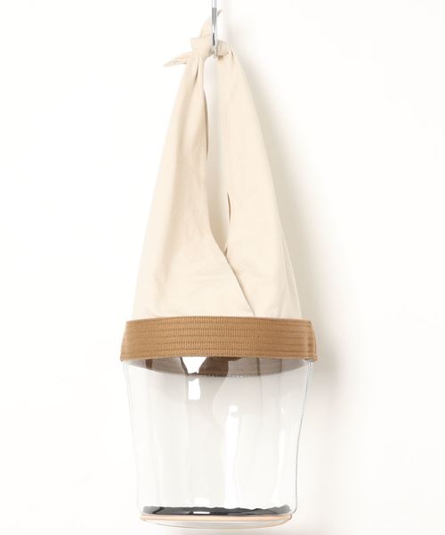 プラントポットのような外観がユニークなバッグ。 透明感のあるビニル素材とサラリとした生地が、コーデにシーズンムードを与えます。 間口は大きく開くので物の出し入れもラクラク。カジュアルなデザインなのでデイリーコーデに合わせやすいひと品です。