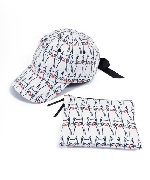override×BOUFFANTS&BROKEN HEARTS■BOUFFANTS & BROKEN HEARTSフィラデルフィア出身のグラフィックアーティストKendra Dandy(ケンドラ・ダンディ)が手がけるブランド。メイクやフルーツ、動物など可愛いらしいモチーフを独特な世界観でパターンに引き落としたキュートながらもどこかシュールなデザインが特徴。コスメブランドからナショナルブランドまで幅広くコラボを展開している彼女ですが、日本の帽子ブランドとのコラボはoverrideが初めて。ガーリーな配色とリボンがキュートな6PCAPケンドラ・ダンディらしいカラフルでキュートなプリントを施しました。後ろのリボンが、キャップのカジュアルさに可愛らしい雰囲気をプラスしてくれます。後ろ向きで写真を撮るとリボンが映えて可愛らしいのでオススメ!セットのポーチは薄手なので、バッグの中身を整理するのに役立ちそう。
