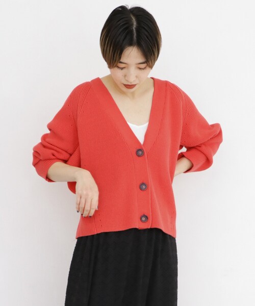 アイレット編みが目を惹くコクーンシルエットのカーディガン。ざっくりと羽織るだけでなく、ボタンを留めてトップスのように着こなしても可愛い。着抜かせると、より一層今っぽく仕上がりますよ。ワードローブにあると便利なアイテムです。