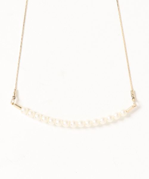 小粒のパール調ビーズを並べたシンプルモダンなネックレス。 華奢なチェーンが女性らしさを引き立て、上品で繊細な首元を演出します。 デイリーカジュアルにもパーティスタイルにも合い、備えておくと重宝すること間違いなしです。