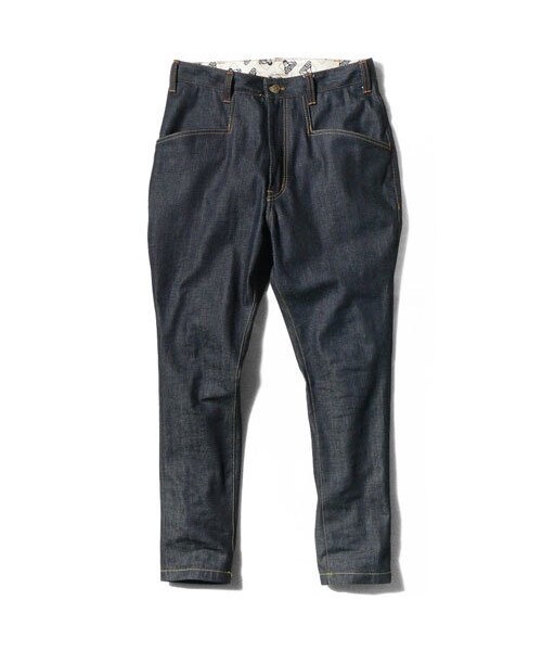 ※再入荷しました。【BEN DAVIS PROJECT LINE】(ベンデイビス プロジェクトライン)定番のジョッパー型デニムです。ウエストやヒップ周りは通常のデニムよりややサイズ感が大きめのイージーフィット。膝下からはふくらはぎにフィットするスリムラインで、快適な穿き心地とは対照的にタイトで美しいシルエットを演出できます。ストレッチ素材のため、タイトな膝下もさほどストレスを感じません。フロントポケットはBEN DAVIS(ベンデイビス)の定番L字パターンを採用し、左バックポケットにも伝統のスマイリングゴリラ+スナップボタンの配列を再現してます。スリムタイプが苦手な方にも、愛好者が増えてます。一度穿いてもらうと癖になる、非常に人気の高い一本です。穿きこむごとに色落ちが楽しみなインディゴを使用したリジット(生)デニム。ヴィンテージの配色を意識したイエロー&オレンジのステッチ使いなど、細部まで拘った一本です。着用モデル:身長173cm , 体重60kg着用サイズ:32MADE IN JAPAN*こちらは素材にリジッド(生)デニムを使用してます。洗濯後縮む可能性がございます。予めご了承ください。SIZE