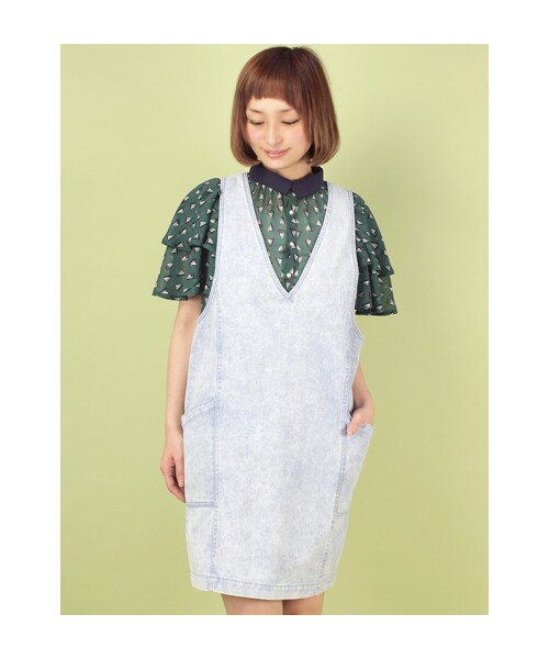 デニムより柔らかいのが特徴のカツラギ生地を使ったカラ―デニムジャンスカ。切替のデザインですっきりしたシルエットです。