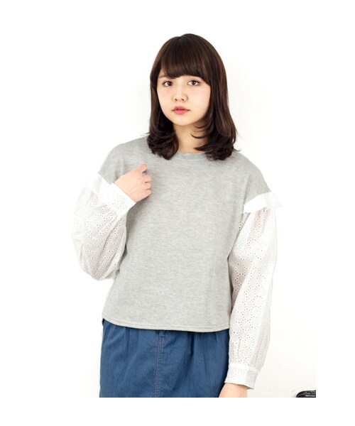 【SEDA 3月号掲載】【mer 3月号掲載】バックとお袖がコットンレースの異素材MIXスウェット。ガーリーカジュアルなアイテムでスカート派にもパンツ派にもおススメなトップスです。
