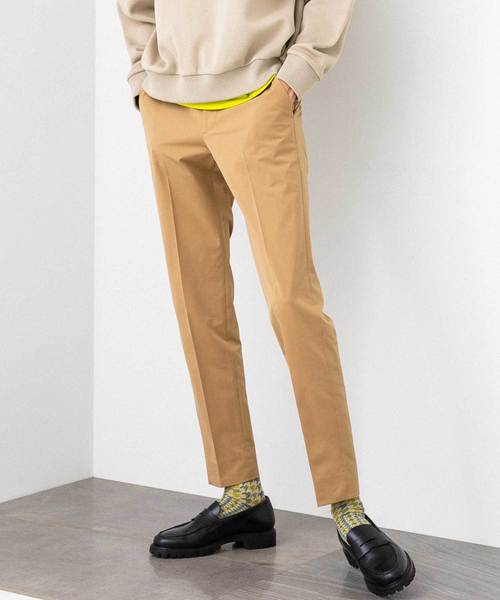 伸縮性ポリマーを使用した縦横ストレッチ素材。 少ない力で伸び、回復力も高い為、カラダの動きに合わせて楽に、そして自由に伸縮。肌触りも清涼感もあり、センタープレスも取れづらく、ケアも楽。身体にフィットする足長効果のあるタイトテーパードシルエット。ノーベルトで穿ける様にバックゴムアジャストデザイン。スポーティーな素材感の為、スニーカーとの合わせもしやすい。オールシーズン通して使用出来る万能スラックス。