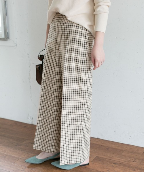 【小柄のチェックが春らしい印象のチェックセンプレパンツ】コットン素材の凹凸のある素材感がナチュラルさを表現。センタープレスの入った上品なワイドシルエットが魅力です。※この商品は水分や汗、摩擦(特に湿った状態での)などにより、色落ちや色移りすることがありますので、着用時・クリーニングの際はご注意ください。白物。淡色物への色移りには充分ご注意ください。▼お気に入り登録のおすすめ▼お気に入り登録商品は、マイページにて現在の価格情報や在庫状況の確認が可能です。お買い物リストの管理に是非ご利用下さい。3638