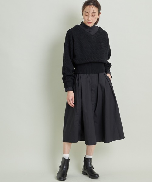 前後2WAYで着られるニットプルオーバー。ドット柄のような模様編みがポイントです。 ショート丈のコンパクトなシルエットですっきり着こなせるので、ふんわりスカートや、ワイドパンツと合わせると好バランス◎