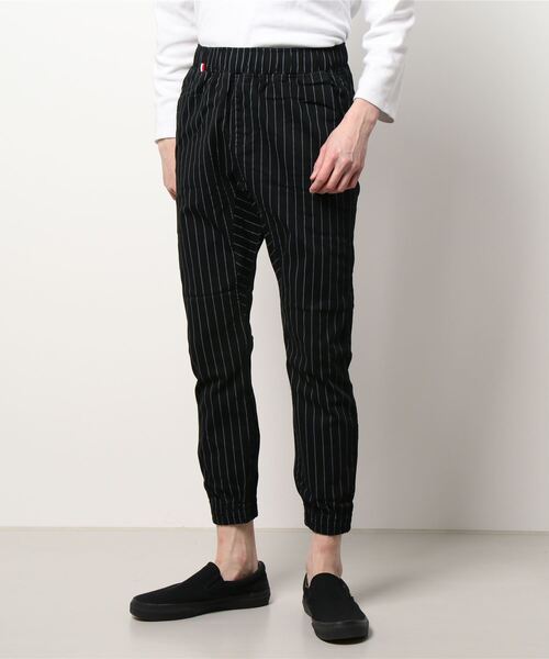 【男女兼用サイズ対応ジョガーパンツ】ストレッチ入りジョガーパンツ。生地は薄過ぎず、厚すぎないのでオールシーズンで活躍してくれる。ウエストはゴムが使用されているため、履く位置でゆったりしたりしたり、細く見せたりもできるのでトップスの大きさで調節して着こなす事も出来るので重宝する。