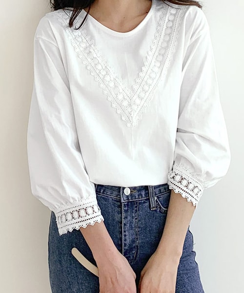 レースラインが可愛らしい一枚♪ 半端丈のパフスリーブでスッキリと仕上げました。デニムにもスカートにもあわせやすい着回し力高い一枚です。 ※WEARに記載してある金額と、DHOLIC通販サイトに記載してある金額にシステム都合上、稀に誤差が生じます。正しい金額はDHOLIC通販サイトに記載された金額です。