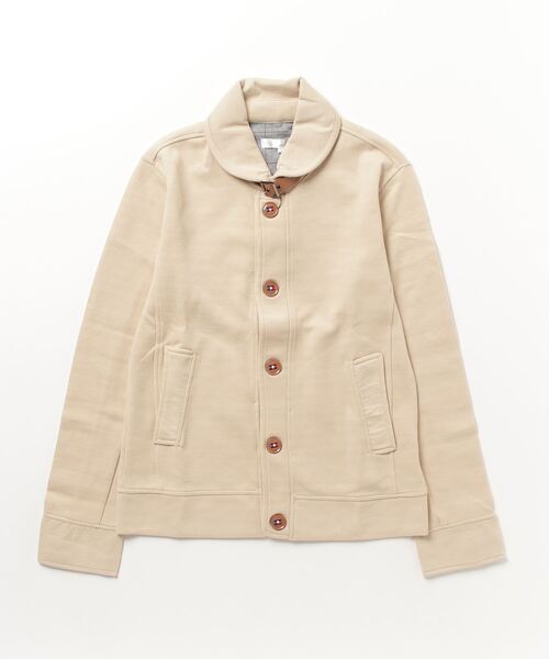 フロントのトリコロールカラーテープとショールカラーが印象的☆ 衿裏と袖口のチェック柄がコーディネートアクセントに! 軽い素材で長いシーズン着用できておススメです!