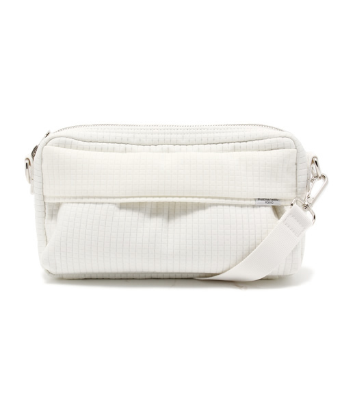【 SOLD OUT商品 店頭通販申し込みはこちら 】 ※ご質問はお電話でも承ります。お気軽にお問い合わせ下さい。 ■B印 YOSHIDA 代官山(TEL:03-5428-5951) 男性的なイメージが強いミリタリーテイストをベースに、立体的でニュアンスのある生地によってフェミニンさを加えてマニッシュに仕上げた、大人の女性に向けたレディースカジュアルシリーズ“SEQUENCE”。 表生地には、堅牢度に優れ発色が良くマットな質感のポリエステルカチオン糸を使ったオリジナルのブリスターリップ(ふくれ織り生地)を使用。このブリスターリップは陰影のある格子柄で、表面が立体的に盛り上がっている二重織構造の生地です。浮き上がらせる模様の部分だけを二重織りにしており、綿と一緒に織ることで凹凸のある表情豊かな高級感を演出。また、表地のコシ感と風合いを壊さずに鞄本体にボリューム感を出すために、内装生地には綿ボンディング加工を施しています。 シリーズ共通のデザインポイントであるフロントポケットは、生地を多く取ることによって自然に出来るタックを洋服のフレアのように表現。生地の柔らかな風合いを生かすため極力ステッチを見せない構造で、武骨なイメージのあるミリタリーモチーフをスタイリッシュに昇華しています。 随所にこだわりのあるパーツを使用しており、ファスナーは高級感があり手当たりも良いエクセラファスナー。ファスナーに合わせて金具類はバフ研磨によるポリッシュを施し、ひとつずつ吊るしてメッキすることで、通常のニッケルメッキには無い、美しく磨きのかかった光沢を出しています。付属のテープは、表地のマットな風合いに合わせて光沢を抑えたポリエステルテープを使用しています。ファスナーテープ同様に、表地とのカラーリングを1トーンで合わせ、落ち着いた印象を与えています。 品番:34-61-0410-049