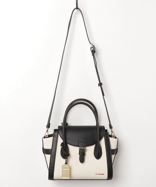 ◇& chouette(アンドシュエット)のフラップキャンバスバッグフロントのベルトデザインがアクセントの甘いだけではなく、大人の女性にももっていただけるバッグです。キャンバス×エコレザーなのでカジュアルにあわせていただくのも◎。ショルダーストラップ付きで2WAY仕様!