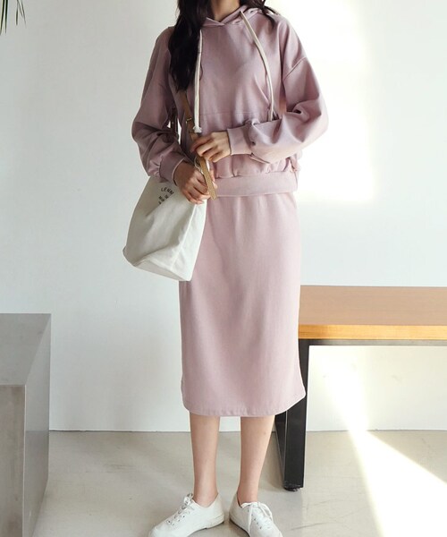 マフポケットが可愛らしいフーディーとスリットスカートのセット。 ピース使いもできコーデの幅が広がること間違いナシ!スカートはHライン×ミディ丈で上品な一枚です。 ※WEARに記載してある金額と、DHOLIC通販サイトに記載してある金額にシステム都合上、稀に誤差が生じます。正しい金額はDHOLIC通販サイトに記載された金額です。