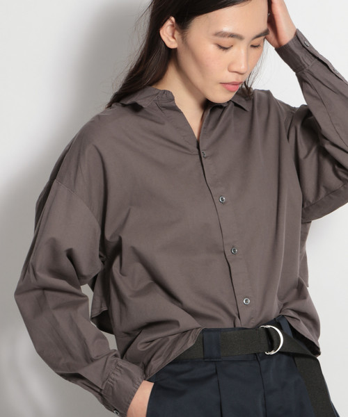 一枚でさらっと着ても透けづらい綿レーヨンツイル素材を使用したデザインシャツ。 今年トレンドのバックシャンデザインがポイントで、大人っぽいこなしのアクセントになる一枚です。 襟元は第一ボタンを下の方に配置した、抜け感のあるスキッパーデザイン。 ミリタリーテイストなカラーラインナップも今年らしい3色展開です。