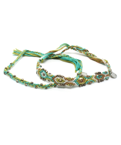 結んで着用する、「CHAN LUU」のミサンガタイプのブレスレット。露出の多くなるこれからの季節のTシャツやシャツスタイルの手もとを印象的に演出します。2本セットになっているので、1本を大切な方へのギフトにするのもお勧めです。 ※こちらは修理対応不可商品となります。 CHAN LUU / チャン ルー 1996年にロサンゼルスを拠点にベトナム出身女性デザイナー"チャン ルー"がスタートさせたアクセサリー中心のブランド。世界中を旅して生まれるカルチャーミックスが彼女の作品のデザインコンセプト。シルバーや、数多くの天然石、革や麻など自然が持つ魅力を充分に引き出し、独創的なデザインの中にあるハンドメイドの温もりとナチュラルな輝きが魅力のアクセサリーコレクションです。ブランドの火付け役となったジェニファー・アニストンをはじめ、多くのセレブに愛されています。