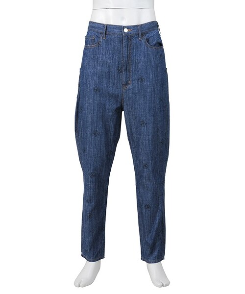 薄手のデニム素材を使用したサルエルパンツ。ステッチであしらわれた「ちゃいろ」がポイント。この製品は独特な風合いを出すため、製品加工を行っております。1点ごとにサイズや風合い等、特徴が異なりますのでご了承ください。Torso:H164 C87 W78 H86着用サイズ:03サイズ