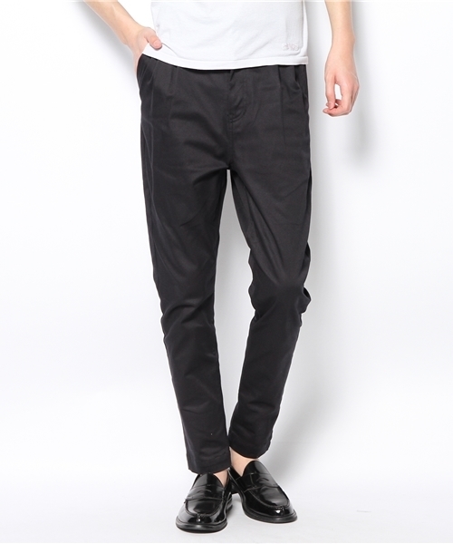 DIET BUTCHER SLIM SKINのテーパードシルエットの2タックチノパンツです。 ストレッチの効いた、テーパードシルエットは履き心地も抜群に仕上がっております。 程よい光沢感がエレガントな雰囲気も演出してくれるパンツです。 【DIET BUTCHER SLIM SKIN (ダイエットブッチャースリムスキン)ブランド紹介】 Nation: JAPAN Designer: Hisashi Fukatami /フカタミ ヒサシ Profile: 大学卒業後、アパレル系企業に就職。 同企業で立ち上げた「DIET BUTCHER SLIM SKIN」とともに独立。 2002年、METAL BURGER inc.を設立し、中目黒に旗艦店“Venom”をオープン。 2006-07 A/Wシーズン、東京コレクションに初参加。 SINGAPORE MENS FASHION WEEK2012に招待デザイナーとして参加。 Brand Concept 繊細で軽やかなマテリアルに重厚なディテールを加え、楽に着ても美しく、優雅でも遊びが存在する、デザインコンシャスな服を 大人が楽しめるスタイルで提案。ランウェイ・インスタレーション・映像と形式にとらわれない様々な形でコレクションを発表し続けている。 model:H175 B73 W71 H80 着用サイズ:1