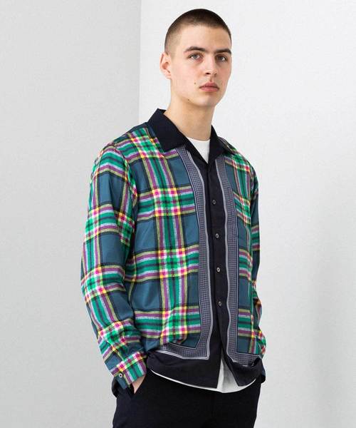 落ち感と程良い光沢感のあるポリエステルサテンにオリジナルプリントを施した開襟シャツ。生地の様なランダムな質感を出す為に、繊細に表現出来るインクジェットを採用。70年代のヴィンテージチェックスカーフをベースにUNITED TOKYOオリジナルの配色チェックにスカーフの外枠をドッキング。程良くリラックスしたシルエットのオープンカラー。フロントから裾にかけて外枠がくる様に非常に手間をかけたデザイン。衿・見返し・ヨーク裏・カフス裏・裾口に別生地使い。デザインと軽くなりすぎないように重しの意味でのディテール。シンプルなスタイリングにトレンド感ある配色豊かなプリント柄を。