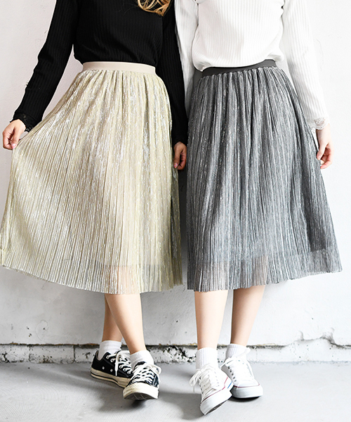 【リンクコーデ専門ブランド/ペアペア】 キラキラのラメがポイントのスカート。 トレンドのプリーツスカートは今年1点は持っておきたいアイテム! 細めのプリーツと程よいシアー感が大人っぽさも演出してくれます。 -------------------------------------------------------- 《モデル身長》 ライトベージュ:159cm グレー:166cm ブラック→159cm 《着用サイズ》フリーサイズ 《透け感》表地あり 《裏地》あり 《伸縮性》なし 《原産国》中国 -------------------------------------------------------- 是非リンクコーデを楽しんで下さいね♪ ※上記品番で検索頂けます。 ※ご覧のモニター環境や撮影環境により 実際の商品と多少色味が異なって見える場合がございます。 ご理解の程よろしくお願いいたします。