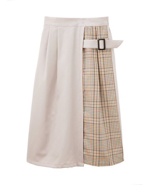 チェック柄の切り替えがアクセントになるAラインスカート。 配色部分はベルト付きでコーディネートに一味プラスしてくれるアイテムです。 タイト過すぎない上品なシルエットですが、 動きやすいのでデイリーアイテムとしても活躍してくれます。 カチっとオンタイムはパンプス合わせ、 ラフなオフタイムはスニーカー合わせ、どちらでも相性の良いミモレ丈です。 ウエストはゴム仕様で着脱もラクチンなのに、 フロント部分はすっきりとしているのでトップスインもオススメです。 シワになりにくいしっかりとした生地に裏地もちゃんとついているので 透け感を気にせず安心して着用いただけます。