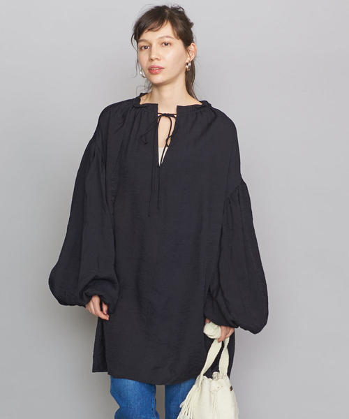 トレンド感あふれるバルーンスリーブが印象的なロング丈ブラウス。 たっぷりとギャザーを寄せた袖やショルダー部分にあしらったレースディテールがフェミニンなアクセントをプラスします。 程よいツヤとドレープ感のある素材や衿元のリボンなど、細部にも品の良さが感じられる一着。 レギンスやワイドパンツなど旬のボトムとも相性がよく、今シーズンらしいスタイリングがお楽しみ頂けます。 <GHOSPELL(ゴスペル)> <SISTER JANE>の姉妹ブランド、<GHOSPELL>は、現在のライフスタイルに合致した、ボヘミアン×アーバンミックスのテイストが特徴的なロンドン発祥のブランド。 6週間ごとに新しいコレクションを展開しています。 店舗へお問い合わせの際は、全国のBEAUTY & YOUTH各店舗まで下記の品名/品番をお申し付け下さい。 品名:BFC GHOSPELL BALOON/SLV 品番:1621-499-1503