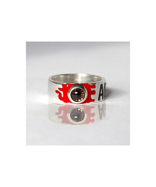 【完全受注生産品のご注文について】 ※こちらの商品は完全受注生産品のため、 ご注文後、一ヶ月前後での完成&お届けとなります。 Item: ”ALEXANDER” Silver Jewel Ring(R) Size: 15号~24号サイズまで受注承ります 17号(S)/18.4mm 19号(M)/19.0mm 21号(L)/19.7mm Material: Silver925/スターリングシルバー 本体表面: 鏡面磨き仕上げ 文字部分: 燻し加工仕上げ 眼球部分: スモーキークォーツ天然石&瞳光彩パーツ 血糊部分: クリスタルレジン製 日本製 / Made in Japan 【商品解説】 1970年代に公開されたバイオレンスSF映画をテーマにした”ALEXANDER”シリーズより、最新作のシルバージュエルリングが完成しました。 左右が異なる色の眼球部分には、(L)左目の瞳部分に「ブルートパーズ天然石」、(R)右目の瞳部分に「スモーキークォーツ天然石」を嵌め込みました。 血糊の部分は、高透明度エポキシ樹脂クリスタルレジン素材に、日本画の材料として使用される岩絵具(天然鉱物を粉にした顔料)を調合して、鮮やかな発色と硬度の高い血糊モチーフを再現しました。 一般にゴシック色が強くなりがちな眼球モチーフをジュエリーの気品と高級感を併せ持つ大人のデザインに昇華させました。 巧みの技術を凝縮した「メイド・イン・ジャパン」が誇る贅沢な逸品をお楽しみください。 【スモーキークォーツ天然石の解説】 鮮やかなブラウンに輝く左目の瞳部分には、職人の確かな目で1つ1つ丁寧に厳選した宝石スモーキークォーツを使用しています。スモーキークォーツは、和名「煙水晶」と呼ばれる茶色をした水晶です。水晶中に含まれた微量のアルミニウムが自然の放射線を受ける事で茶色に発色したものです。元々イギリス、スコットランド地方のケアンゴーム山地から産出された褐色の水晶、その中でも黄灰色がかって明るく見える水晶につけられた名前です。この石は古来より魔除けとして用いられ、古代ローマやケルト民族の間では、悪魔祓いや厄除けのお守りとして使用されました。スモーキークォーツは、水晶グループの中で最も身体と大地とのエネルギーを繋げる力に適した石で、心身や精神を安定させ、恐怖や不安を解消するなどの治療効果があるといわれています。 【デザインの解説】 異なる色をした左右の瞳、両手首に刻まれた聖痕...作中に登場する主人公の衣装袖口に付いた不思議なデザインをした目玉カフスボタンの意味合いは、人種の隔たり(瞳の色)を問わずに、全人類が受け継いだ不可避の罪である「原罪=イエス・キリスト」を表現しており、監督が自身の作品を通してテーマとして掲げた「人間の本質=暴力」とも繋がります。主人公の部屋に飾られたキリスト像にも同じ意味合いが込められています。一神教において唯一絶対の存在である神が複数存在することから、「神の複製=人間=人間の本質は暴力」のテーマに帰結します。 【特製ケースの解説】 シルバージュエルリングは、JETLINK特製ケースに入れてお届けします。1個用の特製シングルケース、2個用の特製ペアケースをそれぞれ用意しました。豪華なシルバー箔仕様で仕上げた”ALEXANDER”オリジナルロゴは、熟練職人による手仕事で1箱1箱を丁寧にシルクスクリーン印刷を施しました。大切なシルバージュエルの保存用ケースとしてお使いください。 【商品詳細URL】 http://www.jetl.com/roki_jw16a.html