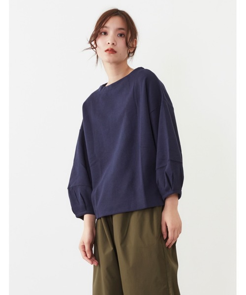 柔らかく着心地の良いワッフル素材の一枚着プルオーバー。ランタンスリーブのボリューム感が、シンプルながらトレンド感のあるアイテムです。シンプルな衿元が袖を引き立てます。カラーの映える4色展開です。袖口を少し上げてさらにボリューム袖にしてもかわいい7分袖。 POU DOU DOU プードゥドゥ ひと手間加えた存在感のある「日常着」 いつまでもときめきとかわいいを忘れない方への 愛着を持てるワードローブ