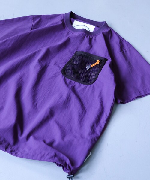 【BURLAP OUTFITTER(バーラップアウトフィッター)】に別注するフロントにメッシュポケットを採用した布帛TEEシャツ。オリジナルモデルをベースに、ドローコードを配し、よりアウトドアライクなテイストに。ロンTEE、パーカーなどのレイヤードにもおすすめの1着。「ORANGE」「PURPLE」「TURQUOISE」「BLACK」でラインナップ。