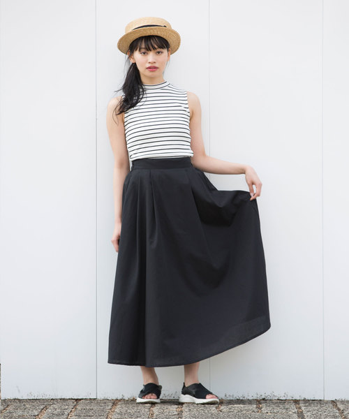 ニュアンス感たっぷりな春らしいロングスカート。 くるぶしまであるロングな丈感で、 前はタック、後ろはゴムでギャザーがたっぷり入り ボリューム満点のフレアシルエット。 なのに綿混のさらりとした軽やかな素材なので、 着用していても重たさを感じません。 定番のブラックにパッと目を惹く明るいトーンのカラーを揃えました。 シンプルなブラウスやTシャツに合わせるだけで 女性の魅力たっぷりなスタイリングに仕上がります。