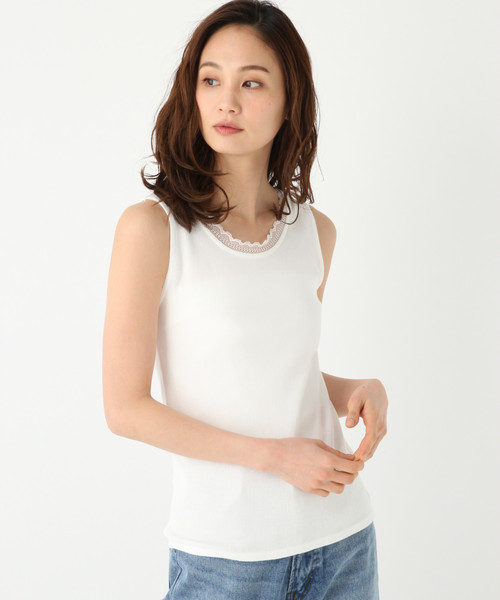 ひまわりオイル加工でしっとりなめらかな肌触り 伸縮性の有るテレコ生地に、上品で華奢なスカラップレースをあしらったフェミニンタンク。 柔らかい素材で着心地も抜群◎ トップスのインナー合わせにおすすめの1枚です♪ Beau-Teeとは、GLOBAL WORKが提案する女性に嬉しいシリーズです。 【ひまわりオイル加工】 ヒマワリ油とシルクアミノ酸という天然モイスチャー成分配合の加工を施し、 しっとりなめらかな肌触りに仕上げました。
