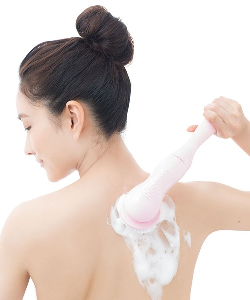 回転ブラシでボディウォッシュ!ブラシは<大><小>選べる2タイプ! 電動ブラシでスッキリ&リラックスなボディケアを! 洗いにくい背中だって楽々洗えるロングハンドルが◎ ロングハンドルを外して短くできるので、腕やデコルテを洗うときなどもとっても便利です。 【商品仕様】 本体寸法:約68(W)×332(H)×76(D)mm 重量:約244g 電源:単3形アルカリ乾電池×2本(別売) 動作モード:弱→強→オフ 主な材質:ABS 付属品:ブラシ(大)(小)、ユーザーズガイド(保証書含む) ※本体寸法及び重量は本体+ブラシ(大)をセットした状態です。