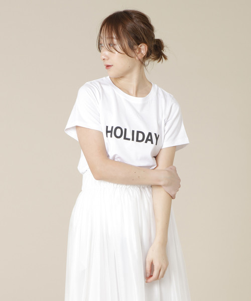 きれいな素材の大人ロゴTとても細く、光沢感のある超長綿素材を使用したプリントTシャツです。白いロゴTは、コーディネートの取り入れたいけど、どうもカジュアルすぎるものが多くて、、という方にぜひおすすめの大人仕様Tシャツです。薄すぎない程よい厚み、すこし光沢となめらかさが、こちらのTシャツの大きな特徴。それに加え、シンプルなプリントと、詰まり過ぎないえりもと、すこし短めの袖ばど、シックに見える仕様が隠されています。デニムなどカジュアルなボトムと合わせても大人っぽく着こなせますが、シックなタイトスカートやジャケットなど、きれいめアイテムとのコーディネートもおすすめのアイテムです。