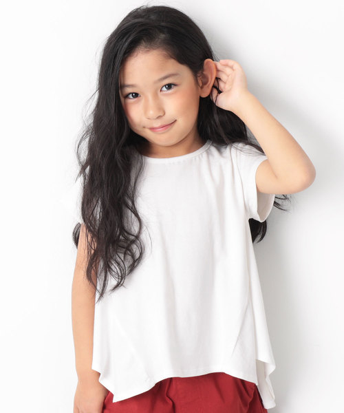 ボリュームたっぷり、 『ハンカチヘム半袖Tシャツ』 動くたびに表情をかえる、 ハンカチーフを垂らしたようなシルエットが印象的な1枚。 ベーシックながらも女の子らしいデザインに仕上げました。 綿100%だから肌触り・通気性の良いさらっとした着心地で 汗の吸収・発散性に優れており型崩れしにくいのもポイント。 キッズからジュニアまでをカバーする100cm~160cmまでの豊富なサイズ展開になっています。 ■ディティール■ 伸縮性:あり ・首周りは伸びにくい縫製 ・便利なお名前タグ付き
