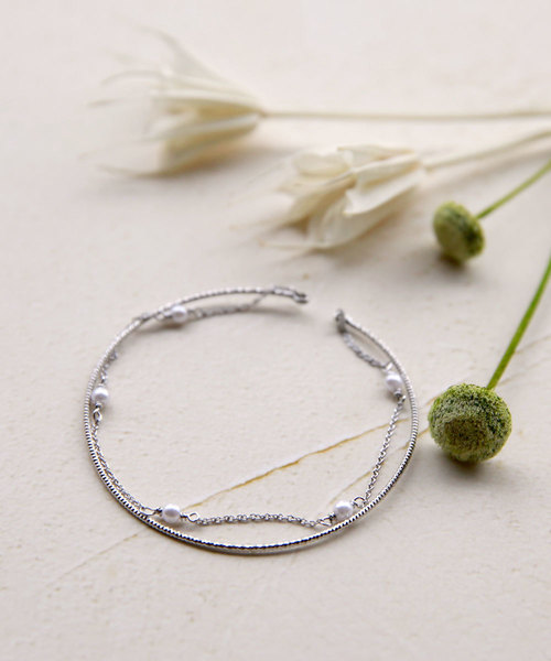 細かいカットを施した細めバングルと、小粒パールを散らしたチェーンを組み合わせたデザインのブレスレットです。 繊細で軽やかな、女性らしい手元を演出します。 主張しすぎないデザインなので、重ね付けや腕時計とのコーディネートもおすすめ。 カジュアルな普段使いはもちろん、オフィスから 結婚式や卒業式・入学式などのオケージョンシーンやパーティーシーンで、 ファッション・コーデを選ばずお使いいただけます。 ◆《お気に入り登録》のおすすめ◆ 気になる商品は「お気に入り」登録がおすすめ。 ・「商品のお気に入り登録」で再入荷通知や、 ラスト1点の通知、セール通知も受け取ることができます! ・お気に入り登録商品は、マイページにて現在の商品詳細(価格情報や在庫状況)が確認が可能です。 お買い物リストの管理に是非ご利用下さい!